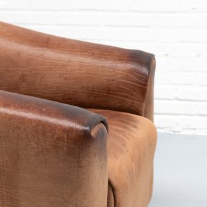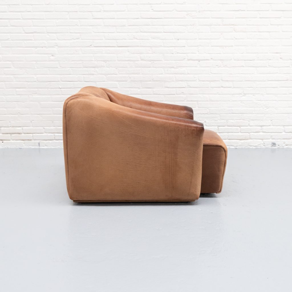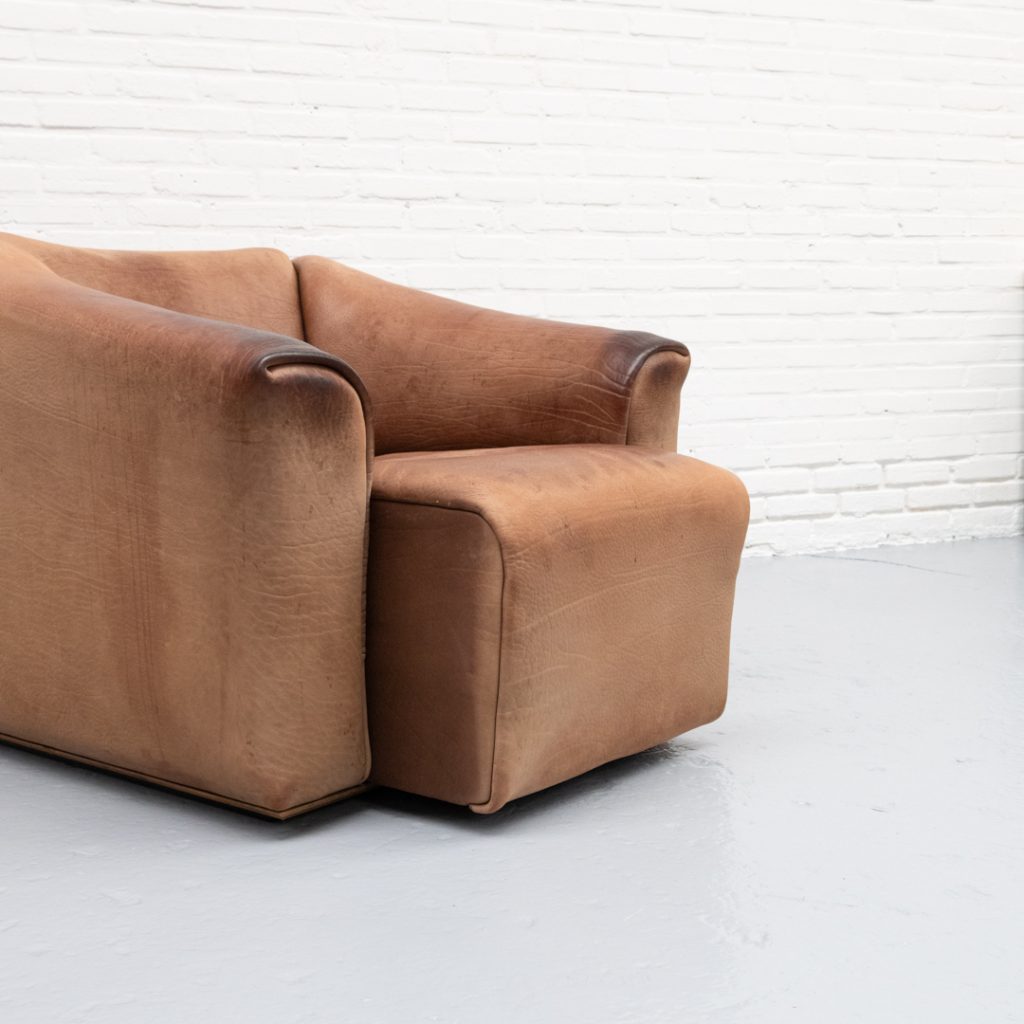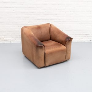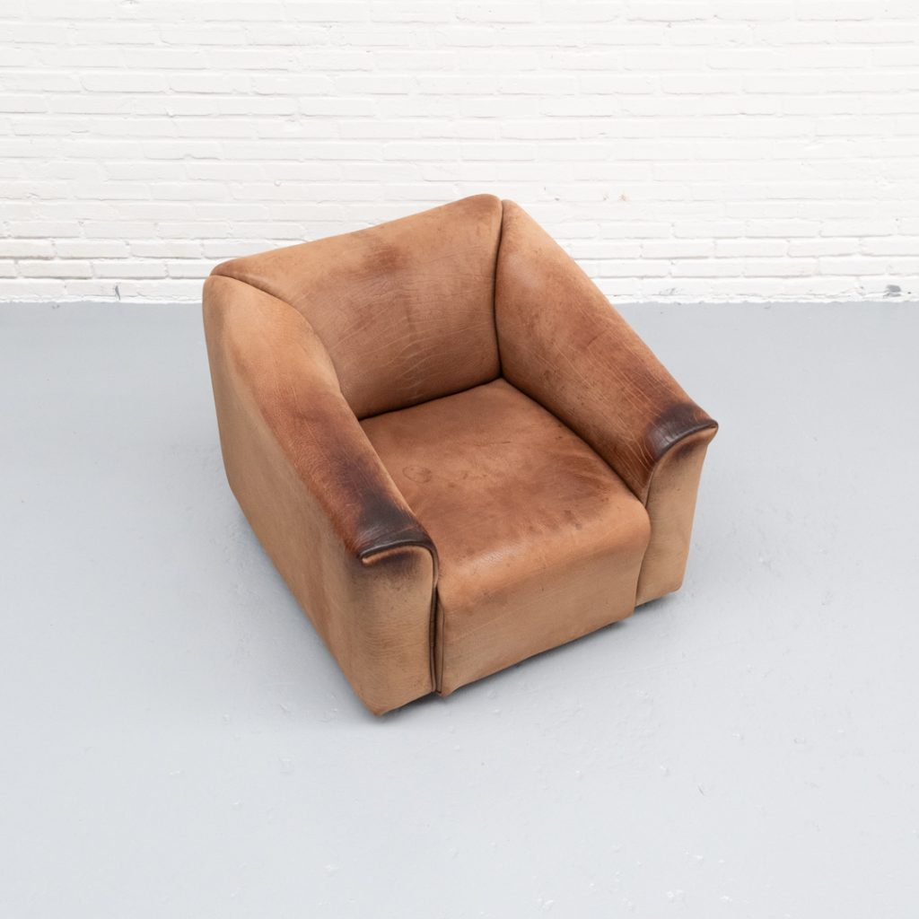 Armchair model DS-47 by De Sede Switzerland. Original vintage 70s model. Beautifully aged thick buffalo leather. The chair is crafted with ultimate comfort in mind, featuring luxurious seat cushions and an extendable seat for added space.