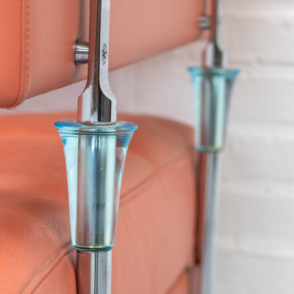 Two-seater sofa “Hydra Sirius” in rose-grain leather, designed by Luca Scacchetti for Poltrona Frau (Italy) in 1992. The sofa combines a clean, refined design with high-quality materials such as Pelle Frau leather and chrome details, showcasing exceptional craftsmanship. The piece is in very good condition with light signs of use.